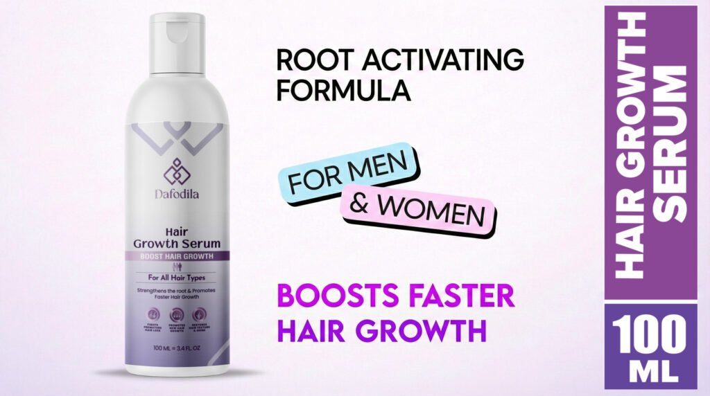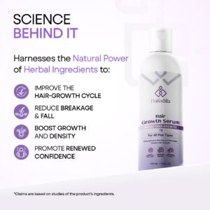Dafodila Hair Growth Serum is powered by a root-activating formula that works directly on the scalp to stimulate faster and healthier hair growth. Designed for both men and women, it helps strengthen hair roots, reduce hair fall, and improve overall hair density with regular use. Lightweight, non-greasy, and suitable for all hair types.